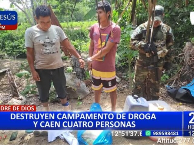 Agentes de la Policía Nacional del Perú (PNP) realizaron un operativo en la ciudad de Madre de Dios, donde intervinieron a cuatro personas y destruyeron un campamento de droga.