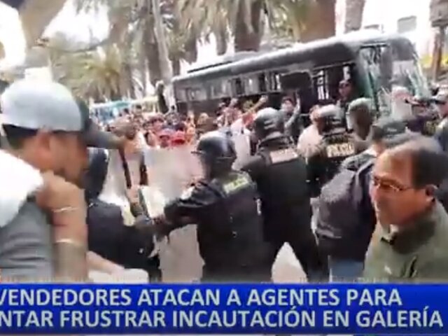 En la región de Tacna, un grupo de vendedores intentó detener a la fuerza un operativo policial en una galería situada en la Avenida Bolognesi de esa ciudad, que presuntamente habría sido adquirida de manera ilegal.