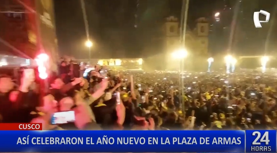 Una emocionante celebración se desató en la Plaza Mayor de Cusco, donde tanto locales como extranjeros se congregaron para dar la bienvenida al nuevo año al compás de la música y los fuegos artificiales.