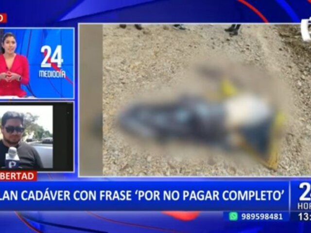 Macabro hallazgo en La Libertad: Encuentran cadáver con frase "por no pagar completo"