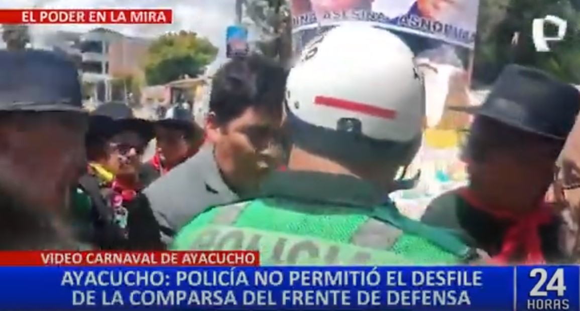 Según conoció, una comparsa perteneciente al Frente de Defensa del Pueblo de Ayacucho (FREDEPA) intentó ingresar al desfile con una carroza con muñecos que representaba a la presidenta Dina Boluarte y al gobernador de Ayacucho. Este incidente provocó el altercado entre los participantes y las autoridades policiales.