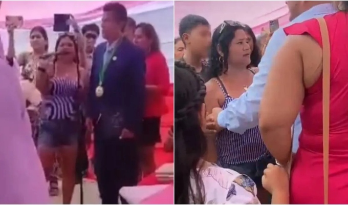 Luego de ello, la mujer intentó agredir a la pareja, pero al no lograr su cometido amenazó con quedarse en los exteriores y buscarlos tras la culminación de la ceremonia. Los organizadores del evento llamaron a la Policía Nacional a fin de evitar cualquier ataque.