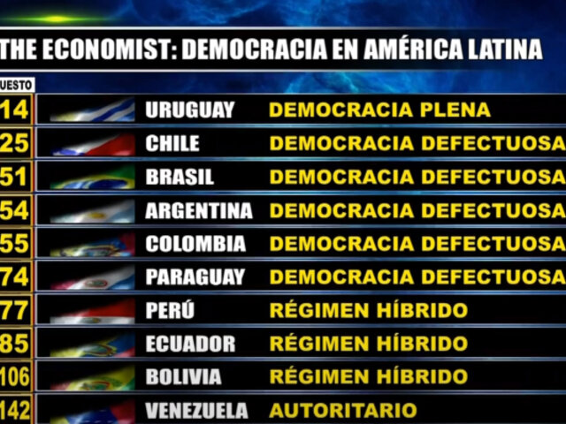 En medio de la crisis social y política que atraviesa el Perú, la revista The Economist realizó un ranking sobre los países con democracia a nivel mundial.