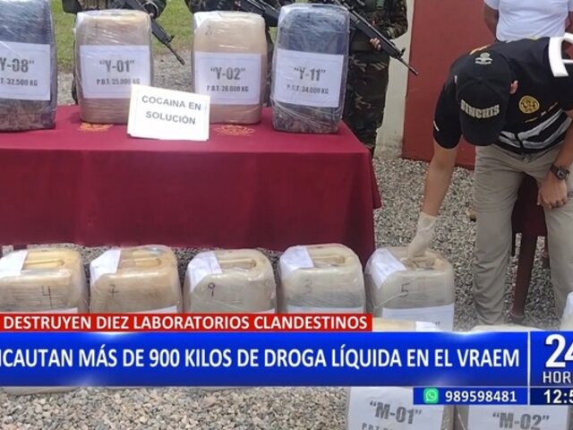 Además de la confiscación de la droga, las fuerzas de seguridad lograron desmantelar un total de 10 laboratorios clandestinos distribuidos en diferentes distritos del VRAEM.