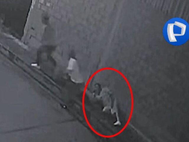 Una cámara de seguridad en Satipo registró cuando un joven caminaba tranquilamente por la calle, hasta que un hampón aparece sigiloso por su espalda y antes que pueda notarlo, lo cogotea para sustraer sus pertenencias. Ambos terminan forcejeando en el piso.