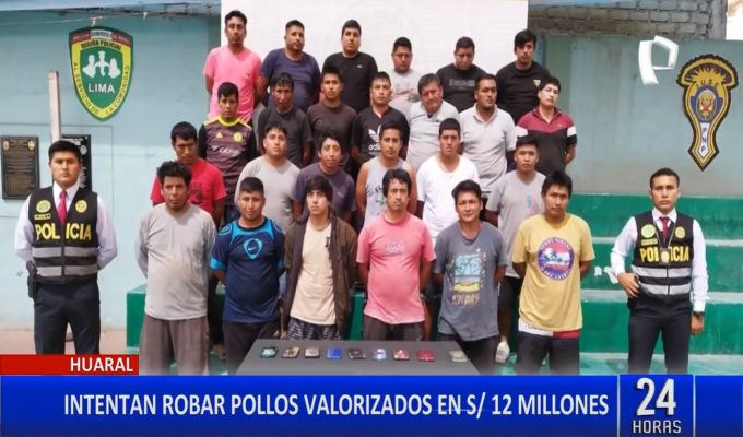 Detienen a 25 personas que intentaban robarse más de 500 mil pollos valorizados en S/12 millones