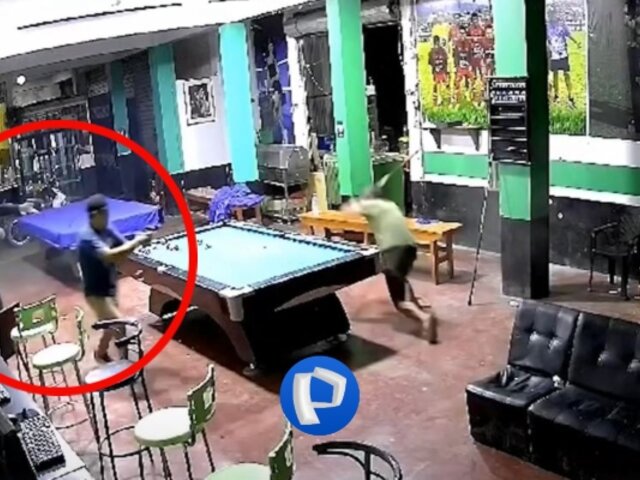 Luego, se levanta y lanza uno de los palos de billar a uno de los criminales, en tanto que el otro sujeto corrió mientras seguía disparando. En ese momento, el hombre que lanzó el palo de billar empezó a arrastrarse por el piso hasta llegar a otro ambiente del local, donde lo siguieron los sicarios.