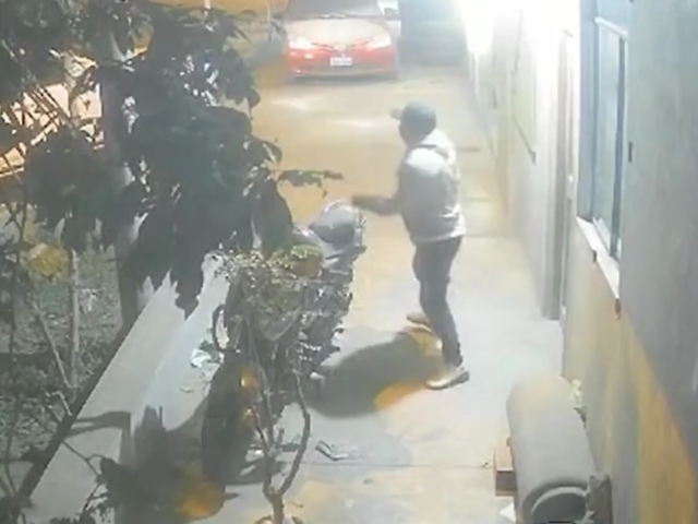 El ladrón forcejea para ingresar al inmueble con el propósito de apoderarse del dinero, sin embargo, al no conseguirlo, dispara. Sin conseguir el botín, el sujeto huye del lugar junto a su cómplice que lo espera en una motocicleta.
