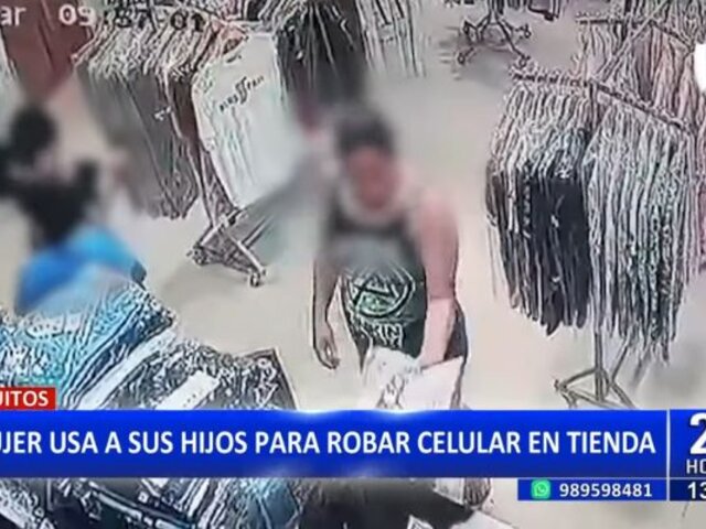 Iquitos: ¡Indignante! mujer usa a sus hijos para robar celular en tienda