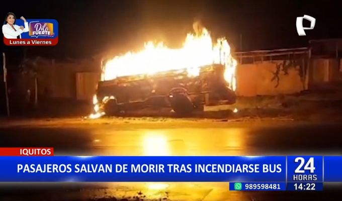 En la ciudad de Iquitos, decenas de pasajeros de un ómnibus de servicio público se salvaron de morir luego que el vehículo en el que iban a bordo empezó a incendiarse de un momento a otro. siendo envuelto en llamas en cuestión de minutos.