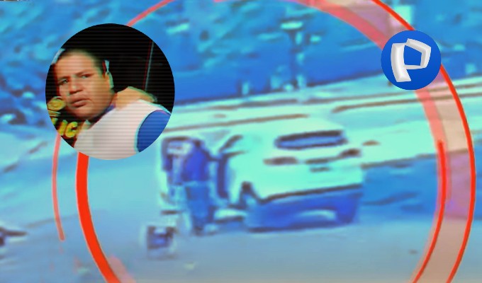 Las cámaras de seguridad registraron el delito. Un hombre que manejaba un vehículo blanco fue asaltado por sujetos que usaban un arma de fuego en mano, lo obligan a bajar del auto y le exigen que les dé un collar y un anillo, ambos de oro, para luego huir con rumbo desconocido.