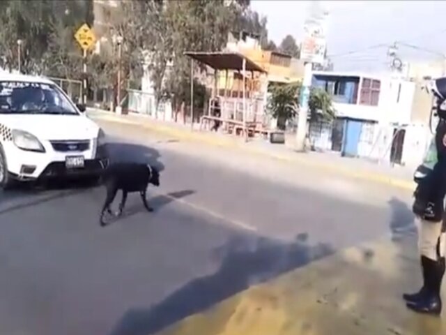 ¡Digno de aplaudir! Policía restringe el tránsito para que perrito pueda cruzar la pista en Huacho