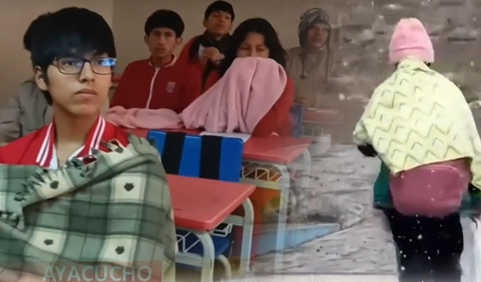 Escolares llevan sus frazadas a colegio por intenso frío en Ayacucho