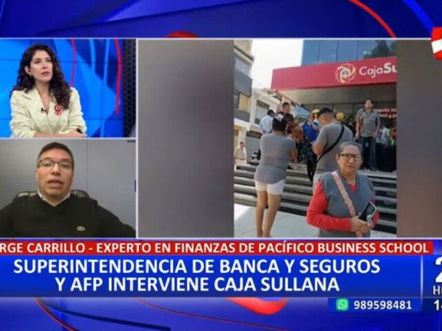 El experto en finanzas de la Pacífico Business School, Jorge Carrillo, se pronunció luego que la Caja Municipal de Ahorro y Crédito de Sullana S.A. fue intervenida por la Superintendencia de Banca, Seguros y AFP (SBS), debido a un deterioro de su solvencia.