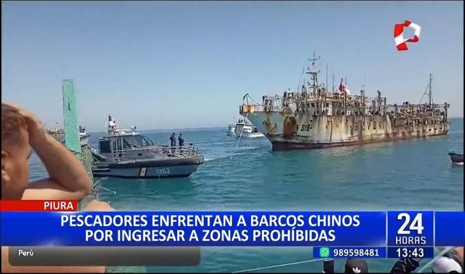 Piura: Barcos chinos ingresan al mar peruano y son confrontados por pescadores artesanales