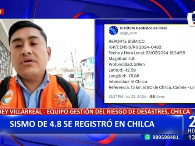 El miembro del equipo de Gestión del Riesgo de Desastres en la ciudad de Chilca, Jeffrey Villarreal, se pronunció tras el sismo de 4.8 grados registrado en horas de la tarde de este martes 23 de julio en dicho sector del Perú.