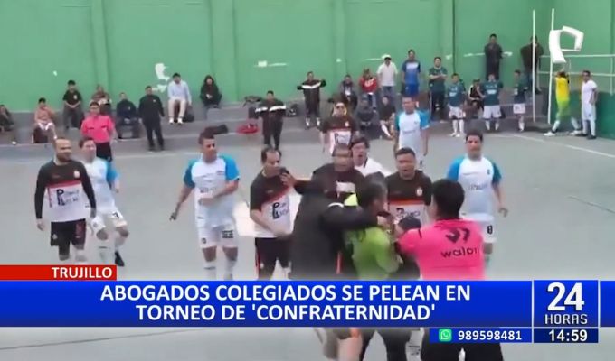 En la ciudad de Trujillo, un campeonato de "confraternidad" de fútbol se convirtió en un ring de box, luego que los participantes del evento, abogados colegiados, desataran una batalla en medio del campo de juego.