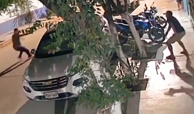 Cámara capta enfrentamiento entre un policía y un extorsionador en Jaén