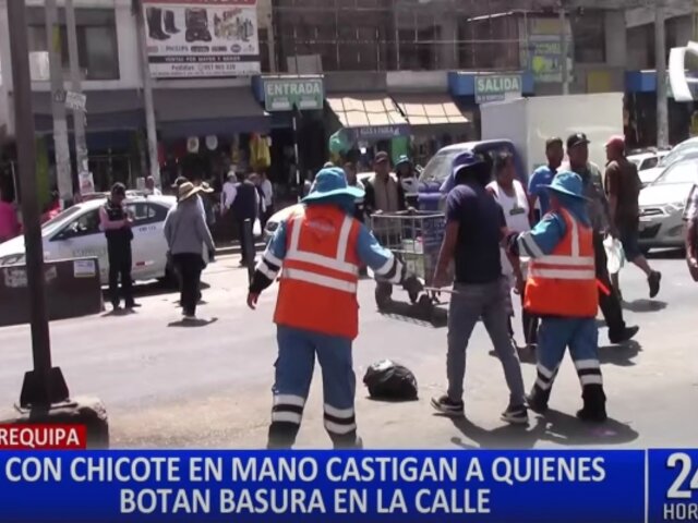 Arequipa: castigan a chicotazos a personas que arrojan su basura en la calle
