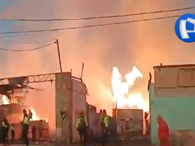 Alrededor de las 5 de la madrugada, se registró un incendio de grandes proporciones que consumió diez negocios dedicados a la venta de madera, a la altura de la quinta cuadra de la avenida Jesús, en el distrito de Mariano Melgar, en Arequipa.