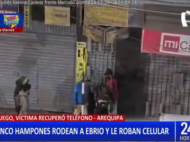 Arequipa: cinco hombres rodean a un ciudadano ebrio y terminan robándole su celular