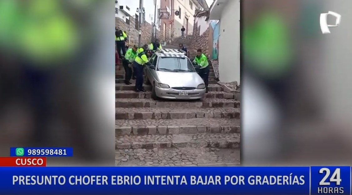 Un conductor, presuntamente en estado de ebriedad, intentó descender con su vehículo por las gradas en el centro histórico de la ciudad del Cusco.