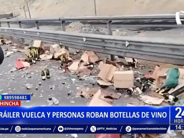 Chincha: trailer se descarrila y personas roban botellas de vino