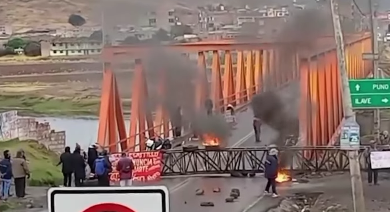 En Puno, los manifestantes bloquearon el Puente Internacional, mientras que en Junín, también hubo cierre de la Carretera Central en la ruta Jauja - Huancayo.