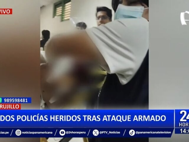 Dos policías resultaron heridos de bala en la avenida Perú, a cuadras del centro histórico de Trujillo. Las víctimas, John Michael Vizcarra Villacorta y Gerald Salomón García Ulloa, ambos de 29 años, fueron llevados de emergencia al Hospital Belén para recibir tratamiento médico.