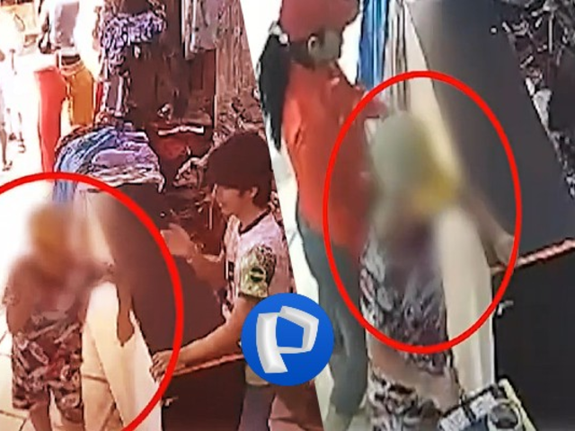 Cámaras de seguridad captaron el momento en que una mujer empleó a un menor para sustraer ropa de un local comercial. La Policía ya investiga el caso.
