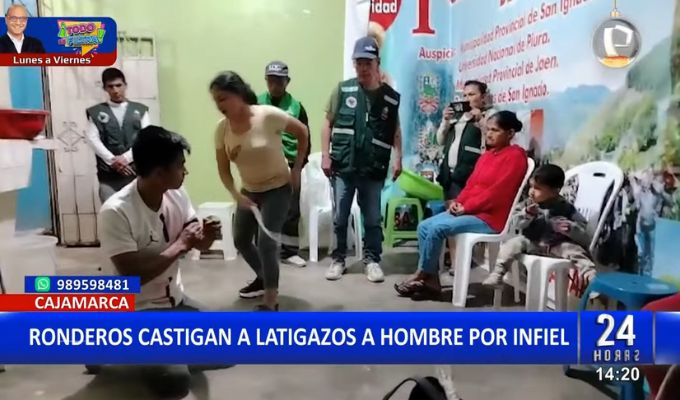 Ronderos del distrito de San Ignacio, en la ciudad de Cajamarca, castigaron a un hombre, quien fue acusado por su propia esposa de haberle sido infiel con otra mujer. El sujeto fue sometido a latigazos por parte de los ronderos.