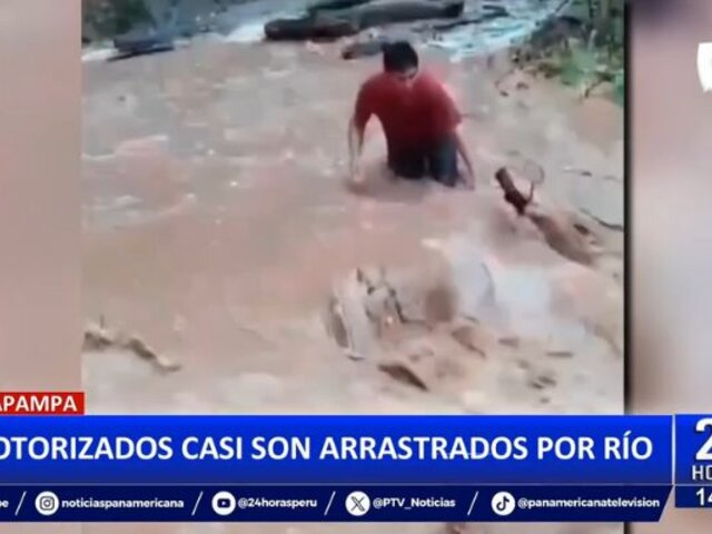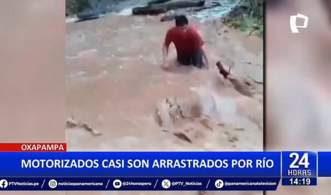¡Se salvaron de morir!: Motorizados casi son arrastrados por corriente de río en Oxapampa