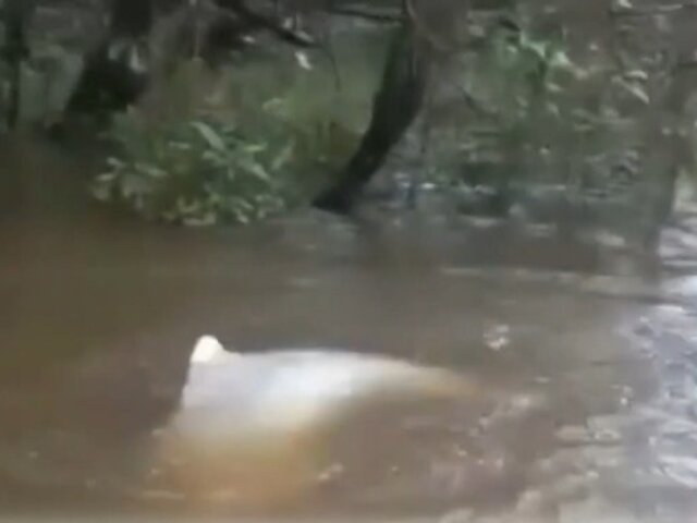 El delfín rosado había quedado atado a un árbol en una de las cuencas del río.