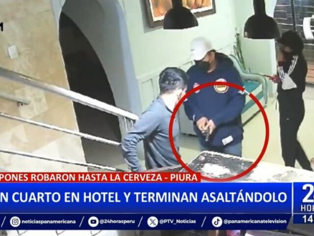 En la región de Piura, el recepcionista de un hotel se convirtió en víctima de la criminalidad, luego que una pareja de delincuentes se hizo pasar como clientes para robarse todo el dinero en efectivo.