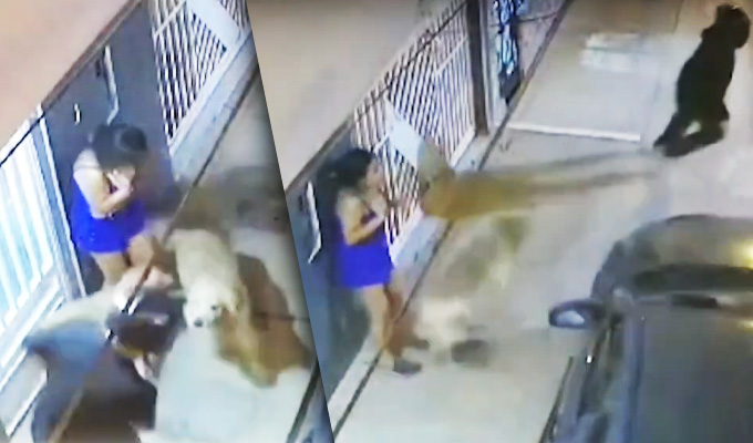 Los canes al ver que su dueña era amenazado por los ladrones armados los atacaron haciéndolos huir.