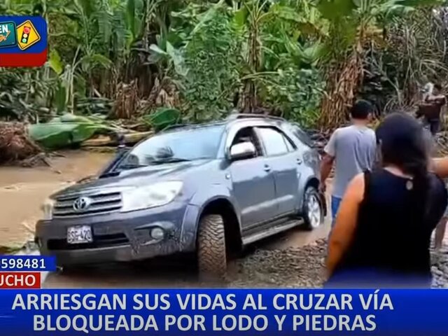 Personas arriesgan su vida para cruzar ruta bloqueada por huaicos en Ayacucho