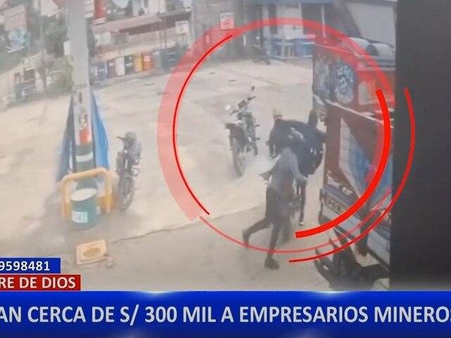 Dos delincuentes armados a bordo de una motocicleta asaltaron a un grupo de empresarios mineros en una gasolinería en la ciudad de Madre de Dios, donde les arrebataron cerca de 300 mil soles.