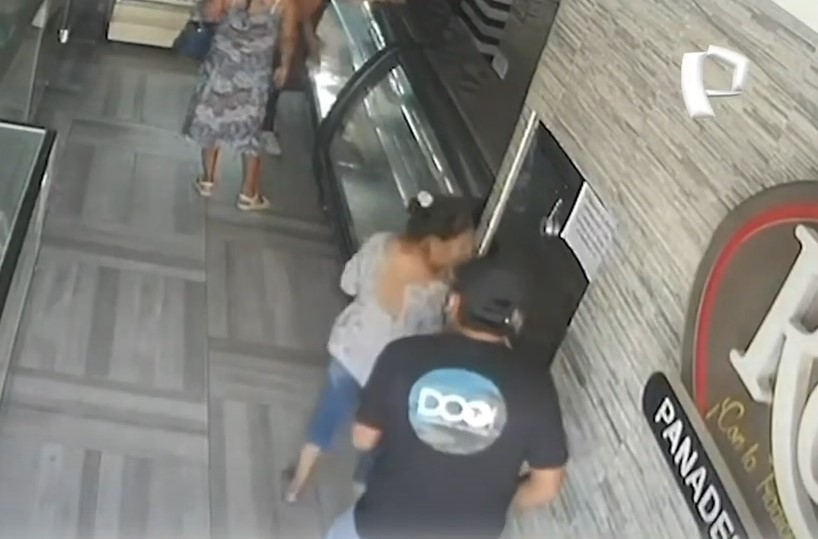 Las imágenes captadas muestran cómo la mujer, tras retirar 10 mil soles ingresó a la panadería sin percatarse de que era seguida. El delincuente esperó el momento preciso para interceptarla, sacarla a la fuerza del local y robarle la cartera, donde guardaba el efectivo y dos celulares.