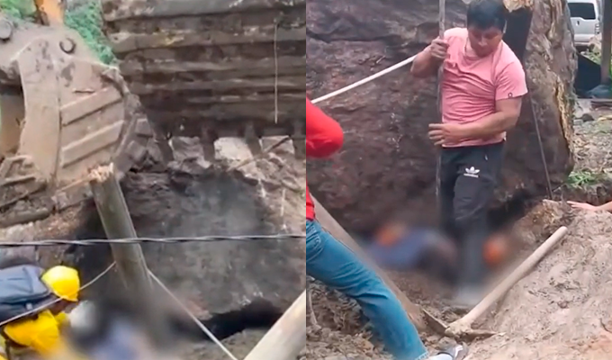 Finalmente, con la ayuda de una excavadora y con sumo cuidado pudieron rescatar a la ciudadana quien de inmediato fue puesta buen recaudo para luego llevarla a un centro de salud.