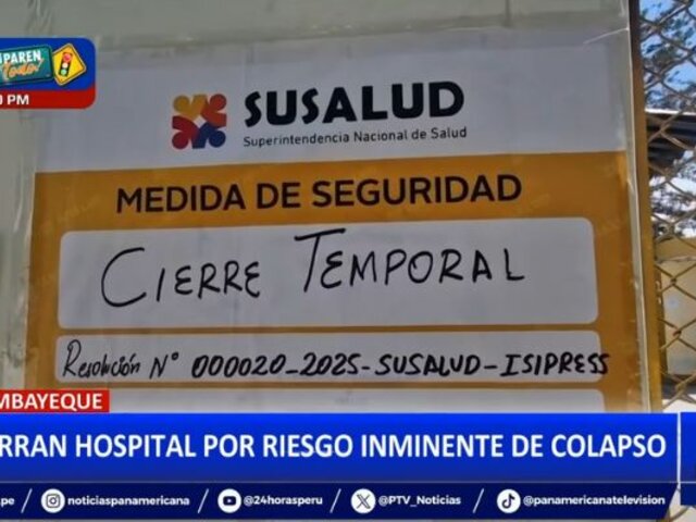 La Superintendencia Nacional de Salud (SUSALUD), procedió con el cierre temporal del hospital referencial de Ferreñafe, en Lambayeque, debido al mal estado de su infraestructura, que corre el riesgo de colapso.