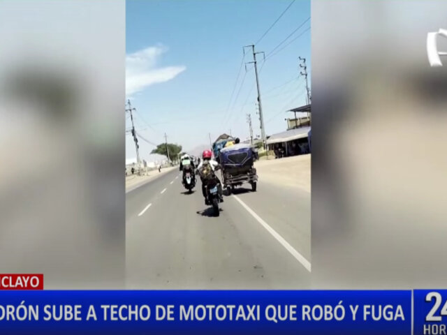 Durante la fuga, uno de los ladrones estaba en el techo de la mototaxi arriesgando su vida; mientras su cómplice conducía en plena Panamericana Norte para evitar ser capturado por el agente.