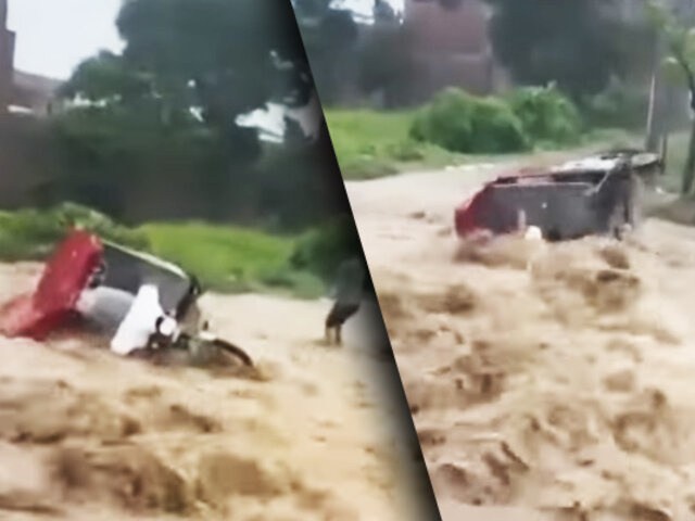 La intensidad de la precipitación fue tal que una mototaxi fue arrastrada por la fuerte corriente de agua y lodo.