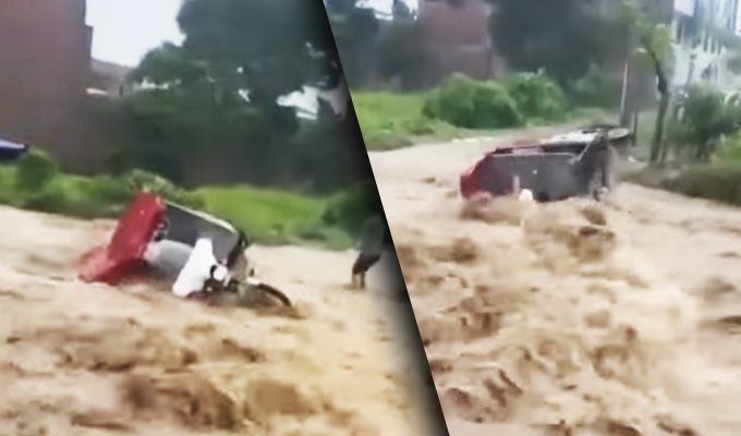 Imágenes impactantes: Desborde producto de una luvia torrencial se lleva mototaxi en Jaén