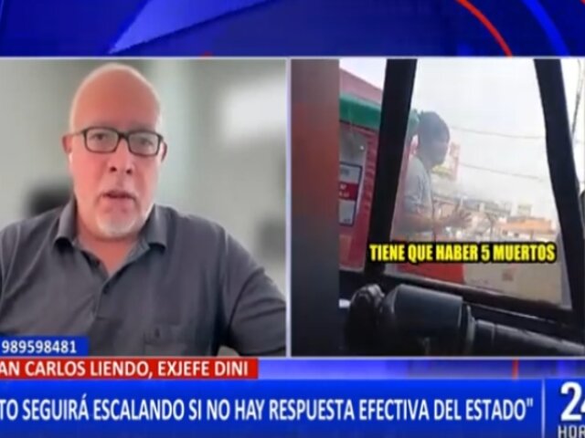 Los casos de inseguridad ciudadana continúan aumentando diariamente, y al parecer, las autoridades del Gobierno no hacen nada al respecto para reducir los números. Ante esta situación, el exjefe de la Dini, Juan Carlos Liendo, mencionó que los hechos criminales continuarán en el país, si no hay una respuesta clara del Estado.