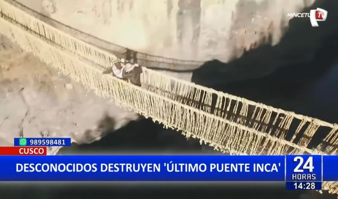 En la ciudad de Cusco, un grupo de desconocidos destruyeron el Puente Queswachaka, también conocido como "el último puente Inca", último vestigio de la ingeniería inca hecha de paja y sostenida por sogas.