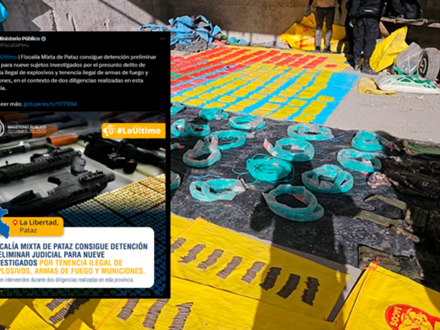 La Fiscalía Provincial Mixta Corporativa de Pataz, encabezada por el fiscal provincial Enrique Humberto Valverde Cabrera, obtuvo la detención preliminar judicial de nueve sujetos acusados de portar ilegalmente explosivos, armas de fuego y municiones. Estas medidas fueron resultado de dos operativos realizados en diferentes puntos de la provincia, en coordinación con la Policía Nacional del Perú.