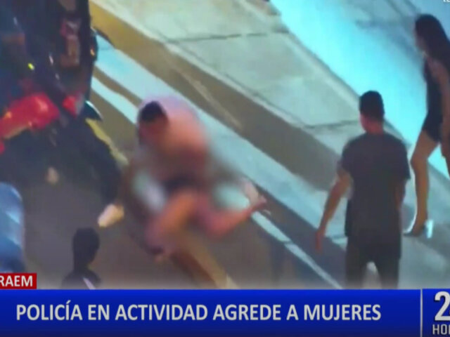Con puñetes y patadas: policía en actividad agrede a mujer afuera de una discoteca en el Vraem