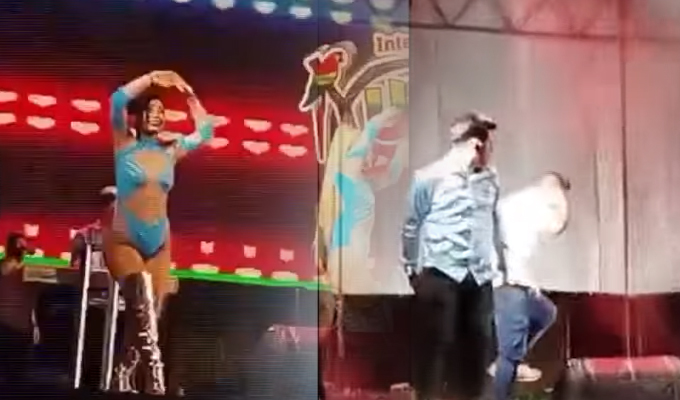 Testigos del hecho, grabaron cuando uno de los asistentes captó el preciso momento en que la pesada pantalla colapsó, generando pánico entre los músicos, cantantes y bailarinas.