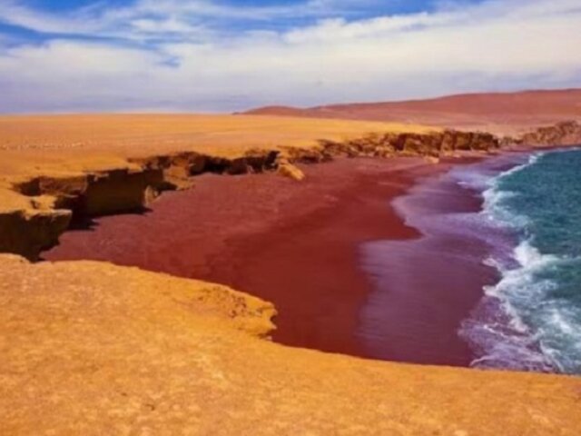 El portal destacó la particular arena rojiza de este rincón peruano, originada por la erosión milenaria de rocas ígneas procedentes de Punta Santa María. Esta arena, compuesta por granodiorita rosada, forma parte de un entorno donde el desierto subtropical se funde con el frío litoral del Pacífico Sur, creando un paisaje de gran riqueza visual y ecológica.