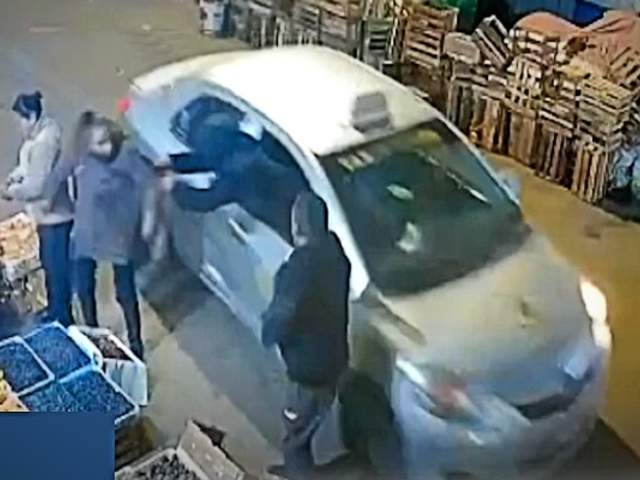 Las imágenes muestran cómo un auto plomo se detiene junto a la comerciante. Desde la ventana del copiloto, uno de los delincuentes estira el brazo y jala violentamente la cartera de la mujer, arrastrándola por varios metros. Un testigo intenta intervenir y se lanza sobre el vehículo, pero los delincuentes logran huir con el dinero.